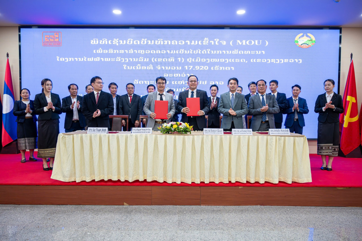 Vừa qua, tại Thủ đô Viêng Chăn, Công ty Cổ phần Điện gió Sao Mai (Sao Mai Wind Power – Thành viên Sao Mai group - ASM) và Ủy Ban Xúc tiến và Quản lý Đầu tư, CHDCND Lào đã thực hiện nghi thức ký kết Biên Bản ghi nhớ (MOU) về việc nghiên cứu, khảo sát tính khả thi dự án điện gió có công suất 300 MW xuất khẩu về Việt Nam tại huyện Nong Het, tỉnh Xieng Khouang (Bắc Lào). Sự kiện diễn ra trang trọng với sự hiện diện của đại diện lãnh đạo 2 bên.
