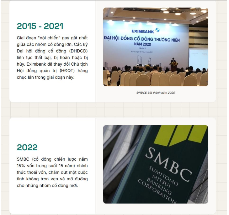 10 năm qua của Eximbank có thể ví như một "bộ phim" đầy kịch tính với những xung đột quyền lực chưa từng có trong lịch sử ngành ngân hàng Việt Nam, đan xen giữa những nỗ lực tái thiết đầy gian truân.