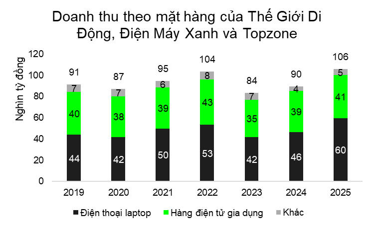 Tuy nhiên, Công ty vẫn ghi nhận mức doanh thu kỷ lục 106.000 tỷ đồng, tăng 18% so với cùng kỳ 2024 – tăng trưởng cao hơn so với mức tăng của thị trường điện thoại và điện máy.