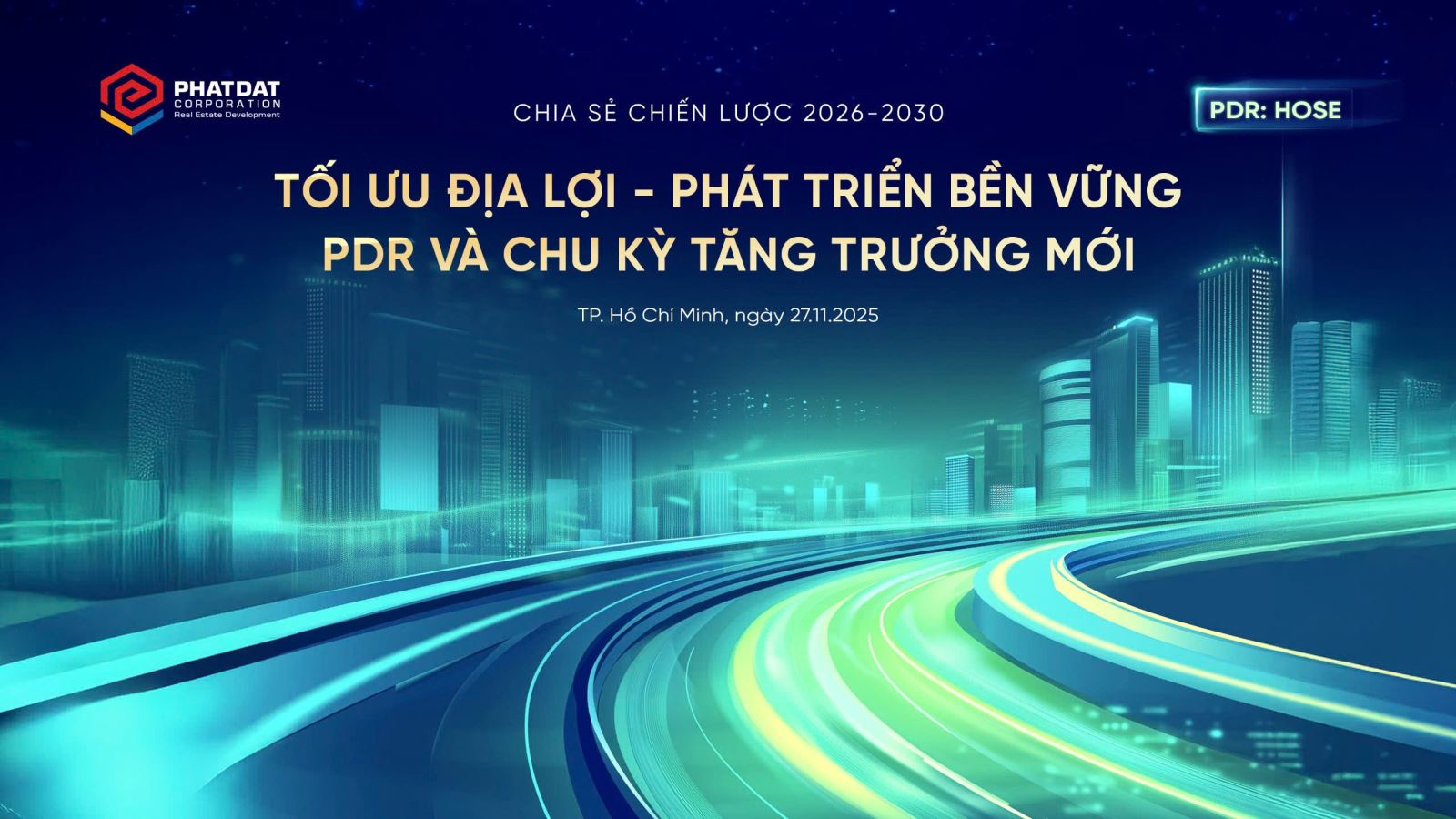 Chiều ngày 27/11/2025, tại TP.HCM, Công ty Cổ phần Phát triển Bất động sản Phát Đạt (PDR: HOSE) đã tổ chức buổi đối thoại về chiến lược phát triển 5 năm (2026–2030) với chủ đề “Tối ưu Địa lợi – Phát triển bền vững”. Sự kiện thu hút sự tham gia của gần 50 quỹ đầu tư và công ty chứng khoán, khẳng định sự quan tâm của cộng đồng đầu tư đối với tầm nhìn và định hướng phát triển của Phát Đạt trong giai đoạn sắp tới.