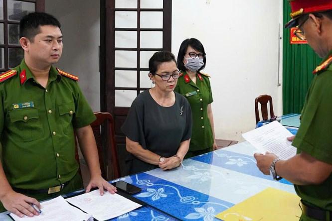 Bà Trần Thị Phước tại cơ quan điều tra. Ảnh: Hồng Nhung