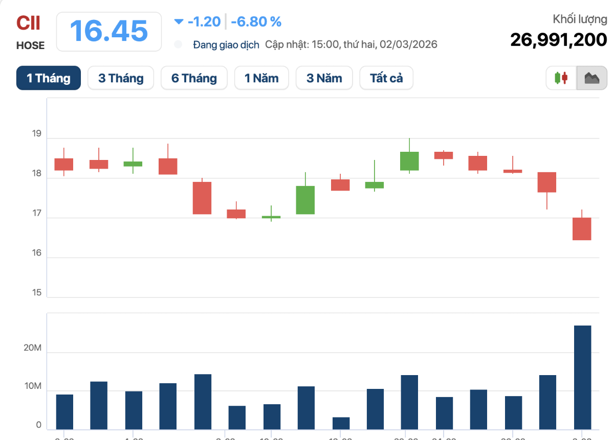 Cổ phiếu CII giảm sàn trong phiên 2/3.