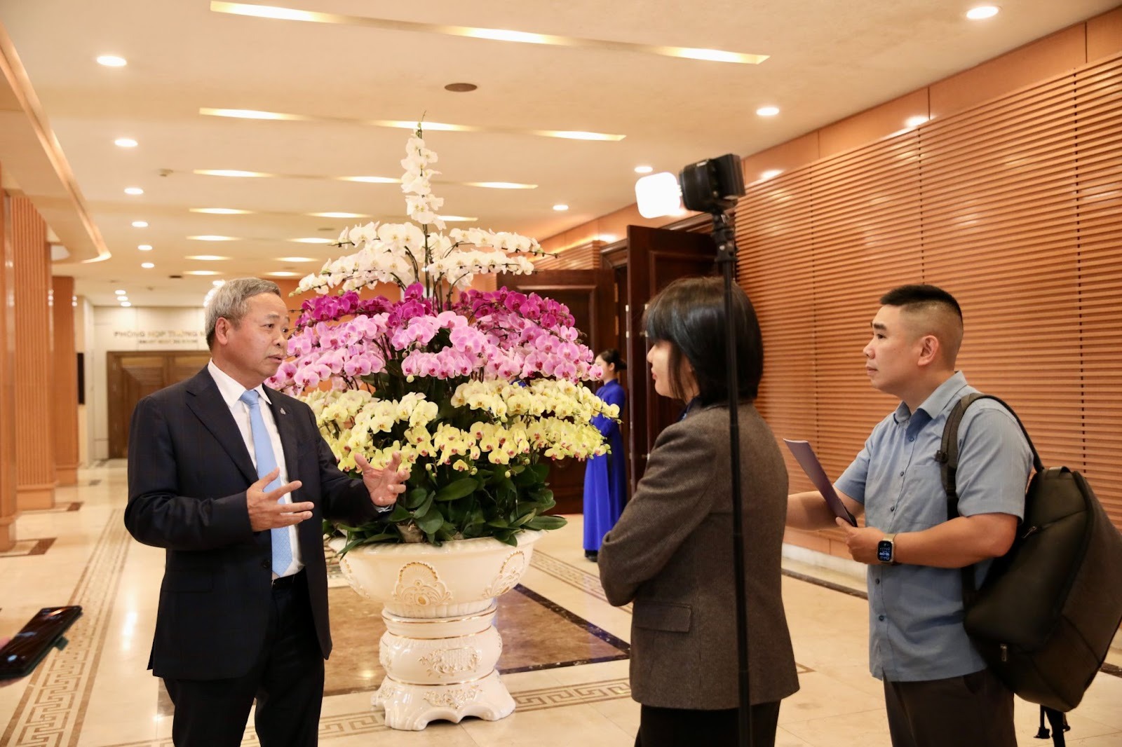 Ông Nguyễn Trung Chính, Chủ tịch CMC trả lời phỏng vấn phóng viên VTV và TTXVN về sự ra mắt Công ty Cổ phần Trung tâm Đổi mới sáng tạo Hà Nội (HIC)