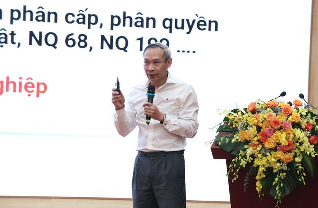 TS Bùi Thanh Minh, Phó giám đốc Văn phòng Ban Nghiên cứu phát triển kinh tế tư nhân (Ban IV) cho biết, trong toàn văn Nghị quyết 68, thuật ngữ “doanh nghiệp” xuất hiện tới 142 lần - nhiều nhất trong văn bản; tiếp theo là từ khoá “phát triển” với 59 lần. Điều này cho thấy tinh thần lấy doanh nghiệp làm trung tâm, lấy phát triển làm mục tiêu chủ đạo.