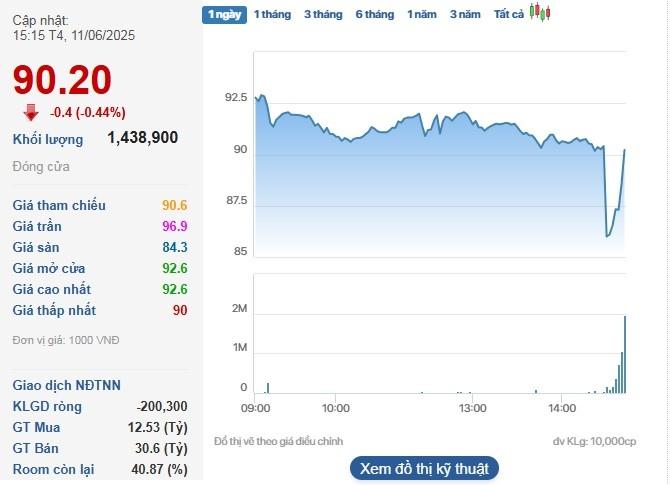 Ngay trước đó, cổ phiếu này vừa ghi nhận sự hồi phục nhẹ trong phiên 10/6, đạt mức 90.600 đồng/cp sau phiên giảm sàn ngày 9/6.