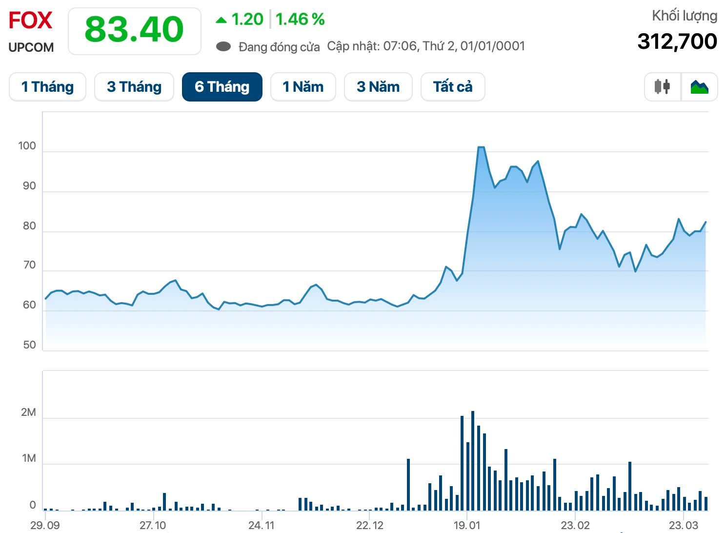 Trên sàn chứng khoán, cổ phiếu FOX đã tăng hơn 30% lên mức 83.400 đồng/cp. Vốn hóa thị trường tương ứng hơn 60.000 tỷ đồng (2,3 tỷ USD).