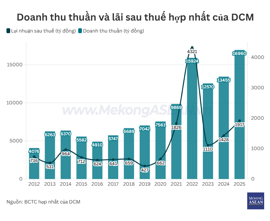 Trừ đi các chi phí, lợi nhuận sau thuế của DCM đạt 1.917 tỷ đồng, tăng 34% so với năm 2024.