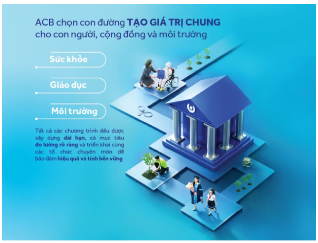 Năm 2025 là năm thứ tư liên tiếp ACB phát hành độc lập Báo cáo phát triển bền vững, tiếp tục khẳng định vai trò tiên phong trong chuẩn hóa công bố thông tin và quản trị theo thông lệ quốc tế. ACB cũng đã xây dựng chiến lược phát triển bền vững giai đoạn 2026–2030, thành lập Ủy ban phát triển bền vững và hoàn thiện mô hình thực thi trách nhiệm xã hội theo hướng tạo giá trị chung cho cộng đồng, tập trung vào ba trụ cột: sức khỏe, giáo dục và môi trường.