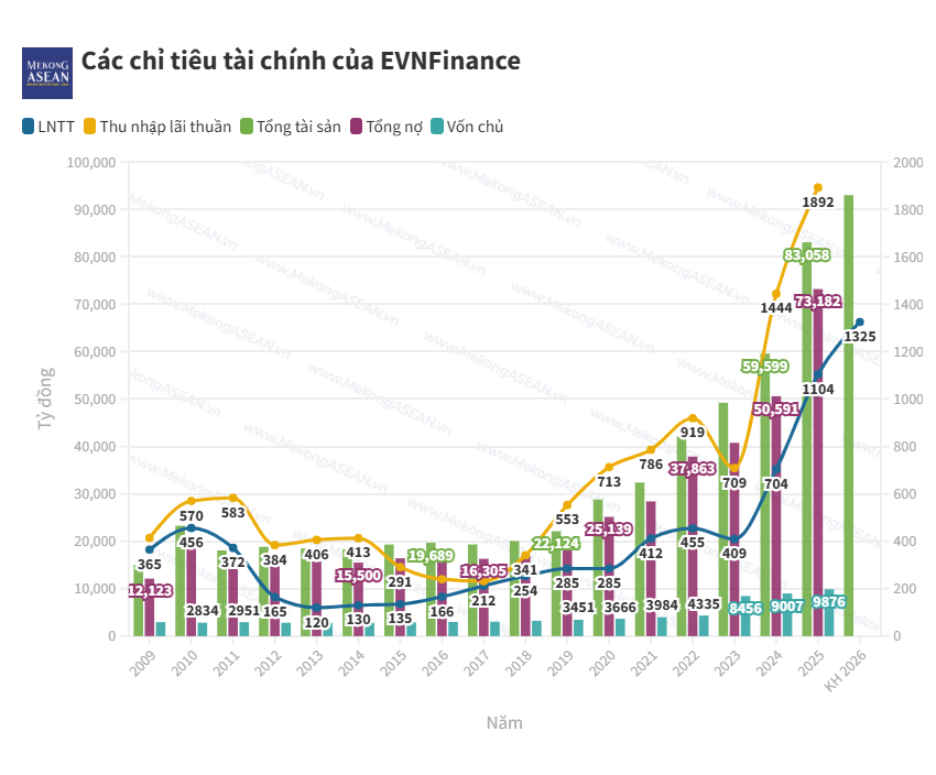 Mục tiêu này được xây dựng trên nền tảng kết quả kinh doanh tích cực của năm 2025. Tính đến ngày 31/12/2025, tổng tài sản của EVF đạt 83.058 tỷ đồng, hoàn thành 104% kế hoạch năm và tăng 39% so với đầu năm. Lợi nhuận trước thuế đạt 1.104 tỷ đồng, vượt 15% kế hoạch và tăng 57% so với năm trước.