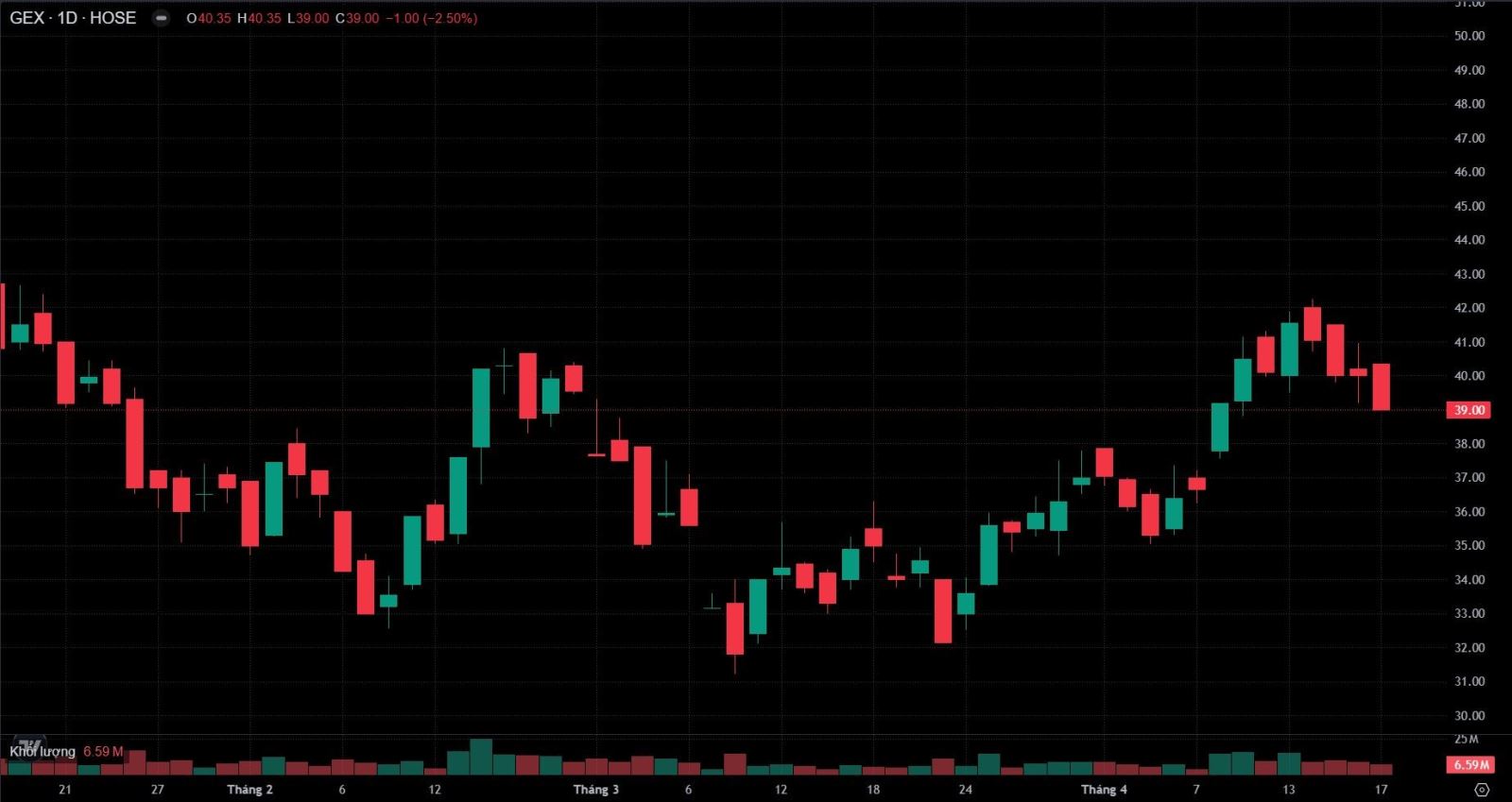 Diễn biến cổ phiếu GEX thời gian vừa qua. Ảnh: SSI Iboard