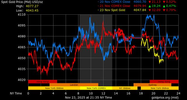 Trên thị trường vàng thế giới, giá vàng giao ngay chốt phiên hôm qua tại Mỹ giảm 40 USD, tương ứng giảm 0,98% xuống mức 4.045,9 USD/ounce. Sang phiên châu Á sáng nay, giá vàng tiếp tục giảm 15,6 USD xuống 4.030,2 USD/ounce.
