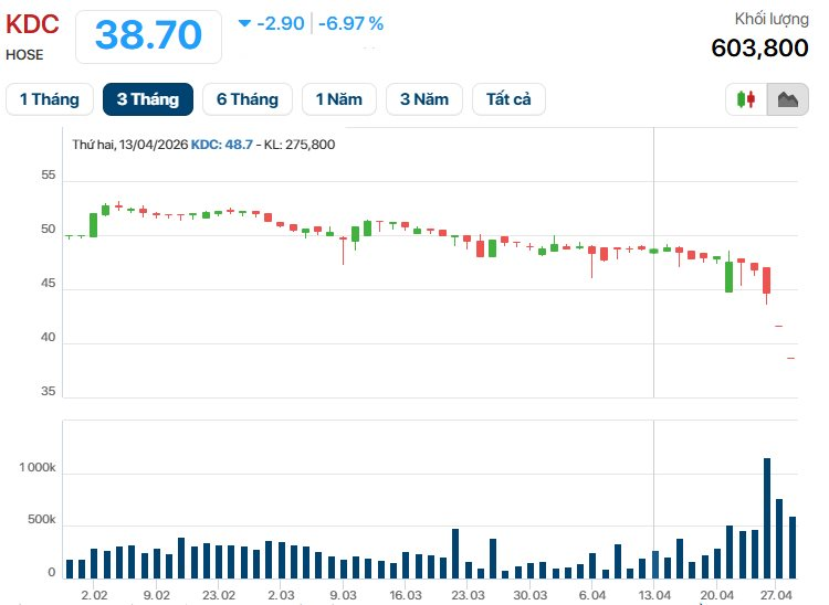 Tuy nhiên, gần 11 giờ, giá cổ phiếu KDC đã hồi phục và kết thúc phiên giao dịch buổi sáng ở mức giá 42.650 đồng/cp, tăng 2,5%.
