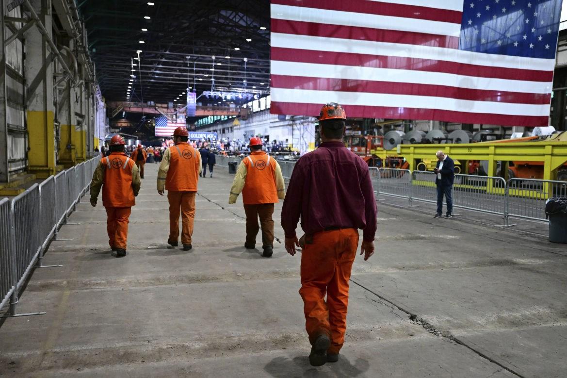 Công nhân tại nhà máy thép US Steel đến dự buổi vận động của Tổng thống Mỹ Donald Trump. (Ảnh: WSJ).