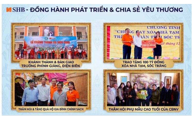 Đồng thời, xuyên suốt nhiều năm, SHB cũng chủ động tích cực tham gia các hoạt động an sinh xã hội, các chương trình của Đảng, Nhà nước về xóa nhà tạm, xây dựng nhà tình nghĩa, hỗ trợ người nghèo… khắp mọi miền tổ quốc.