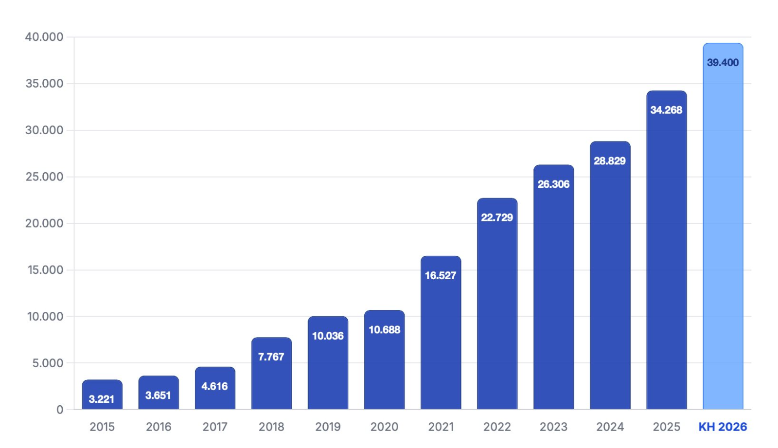 Như vậy, với mục tiêu tăng khoảng 15% trong năm 2026, lợi nhuận trước thuế kế hoạch năm nay của ngân hàng là hơn 39.400 tỷ đồng.