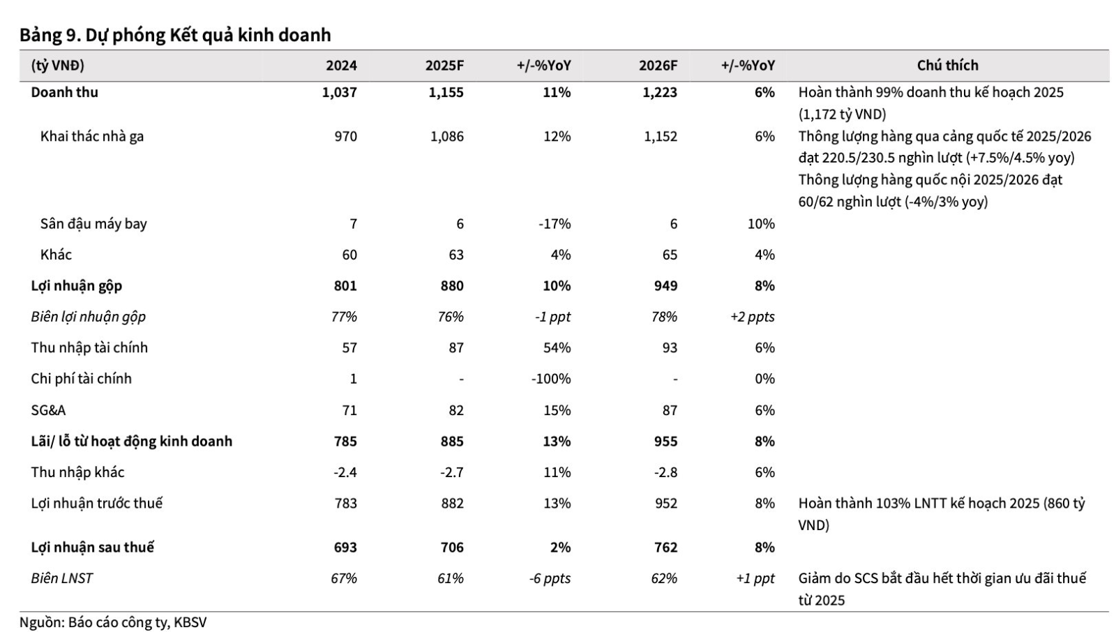 Với tình hình tài chính khỏe mạnh cùng dòng tiền lớn, không có nợ vay, cũng như việc SCS thường đặt mức kế hoạch cổ tức thấp hơn thực hiện, KBSV cho rằng SCS sẽ tiếp tục duy trì tỷ lệ cổ tức tiền mặt cao trong các năm tới, mức cổ tức năm 2025/2026 dự kiến sẽ đều ở mức 6.000 VND/cổ phiếu.