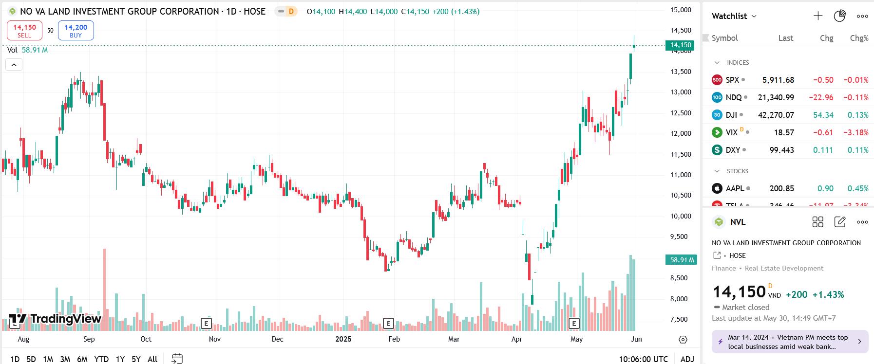 Trên thị trường, HOSE đã đưa cổ phiếu NVL ra khỏi diện cảnh báo từ ngày 3/4 do tổ chức đã khắc phục được nguyên nhân dẫn đến tình trạng chứng khoán bị cảnh báo.