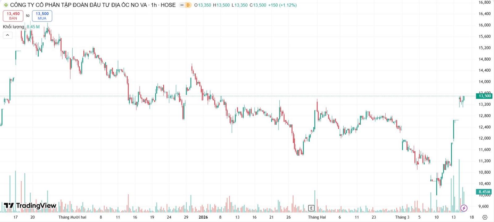 Diễn biến cổ phiếu NVL những phiên gần đây. Ảnh: TradingView