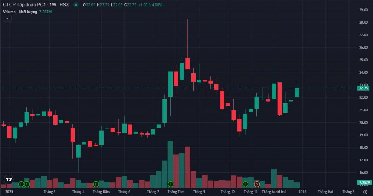 Trên thị trường chứng khoán, cổ phiếu PC1 đang giao dịch quanh vùng giá 22.700 đồng/cổ phiếu, giảm khoảng 10% so với đỉnh ngắn hạn được ghi nhận vào giữa tháng 8/2025.