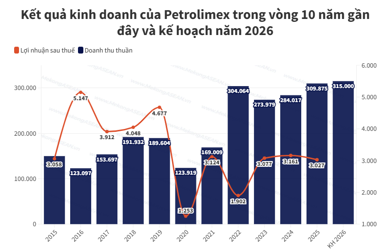 Bước sang năm 2026, ban lãnh đạo Petrolimex đệ trình và được đại hội thông qua kế hoạch xuất bán 19,4 triệu tấn xăng dầu, tương đương mức tăng 10% so với thực hiện năm 2025. Kế hoạch doanh thu hợp nhất được đặt ở mức 315.000 tỷ đồng, tăng 2% và là mức cao nhất trong lịch sử hoạt động của doanh nghiệp.