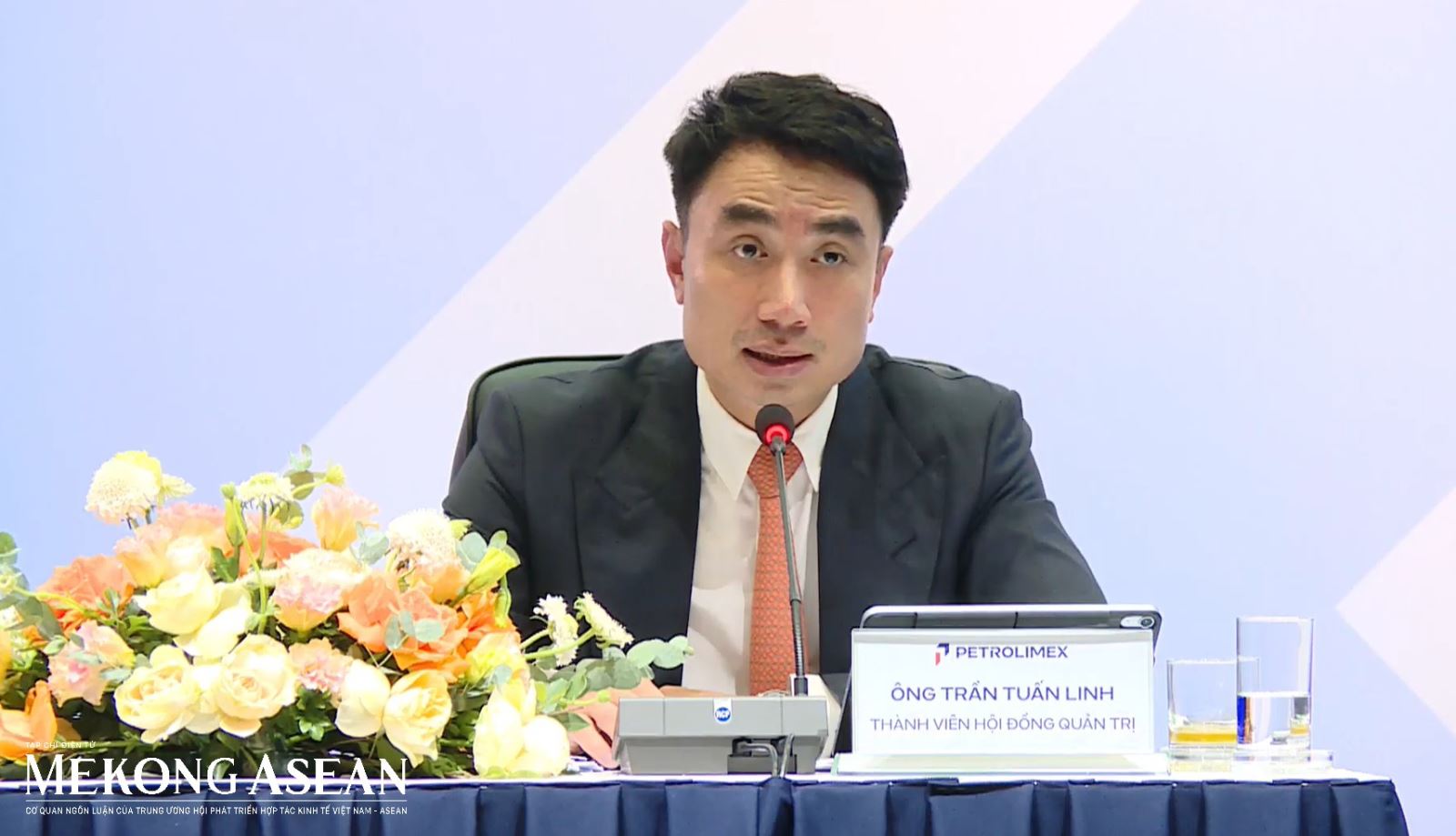 Ông Trần Tuấn Linh, thành viên HĐQT Petrolimex giải đáp thắc mắc của cổ đông tại đại hội. Ảnh: Thu Thảo/Mekong ASEAN.