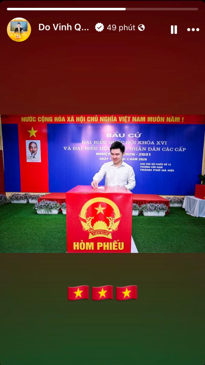 Hôm nay 15/3, gần 79 triệu cử tri cả nước tham gia bầu cử đại biểu Quốc hội khóa XVI và đại biểu HĐND các cấp nhiệm kỳ 2026-2031. Hoà chung không khí đó, trên trang cá nhân của mình, Phó Chủ tịch T&T Group, Đỗ Vinh Quang đã chia sẻ lại khoảnh khắc bỏ tấm phiếu cử tri vào hòm phiếu tại Khu vực bỏ phiếu số 12, phường Cửa Nam, Hà Nội.