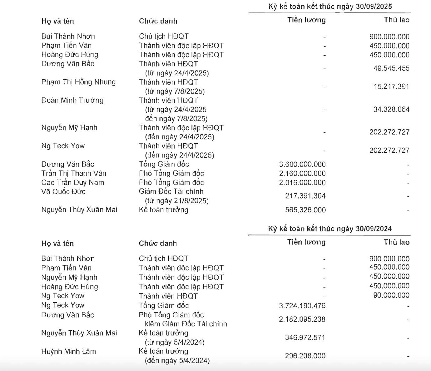 Cũng trong 9 tháng năm nay, ông Bùi Thành Nhơn - Chủ tịch Hội đồng quản trị Novaland, nhận thù lao 900 triệu đồng - không thay đổi so với năm trước. Như vậy, thù lao của ông Nhơn là 100 triệu đồng/tháng. Hai thành viên Hội đồng quản trị khác là ông Phạm Tiến Vân và ông Hoàng Đức Hùng cũng duy trì mức thù lao 450 triệu đồng/người.