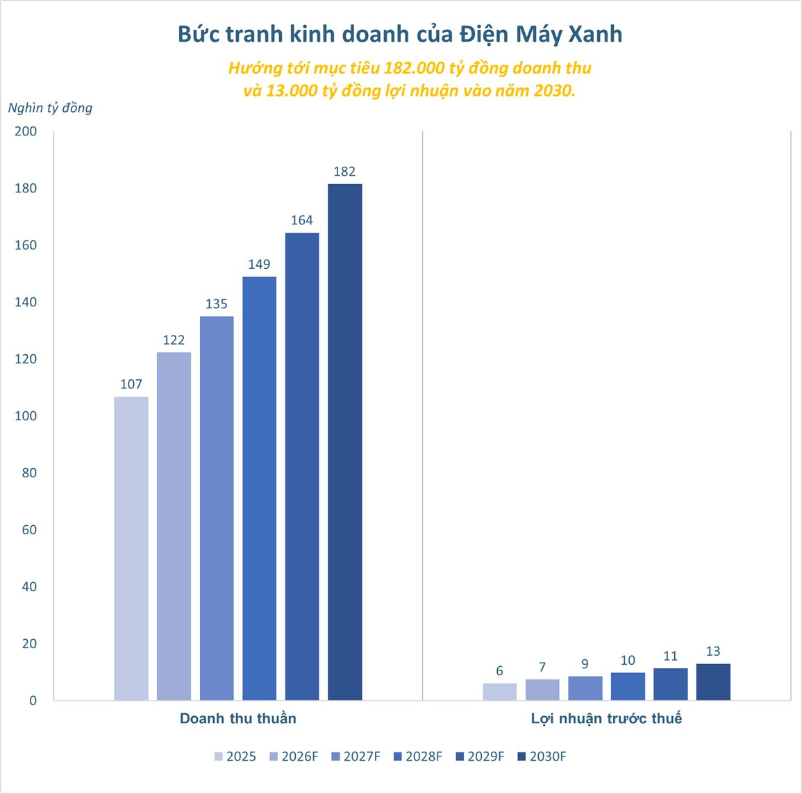 Năm 2025, trong khi toàn thị trường bán lẻ chỉ tăng trưởng khoảng 13%, DMX đã bứt phá với mức tăng trưởng 18%. Doanh thu thuần năm 2025 của doanh nghiệp đạt 107.000 tỷ đồng và lợi nhuận sau thuế ghi nhận con số kỷ lục 6.100 tỷ đồng. Điểm nhấn khiến giới đầu tư đặc biệt quan tâm chính là biên lợi nhuận gộp đạt mức 17,1% trong năm 2025, tạo nền móng vững chắc cho lộ trình mở rộng biên độ sinh lời trong các năm tiếp theo.