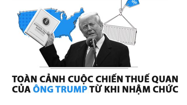 Đồ thị thông tin dưới đây trình bày chi tiết các diễn biến thuế quan của chính quyền Tổng thống Mỹ Donald Trump kể từ khi ông nhậm chức đến nay...