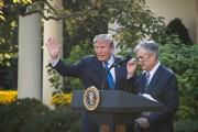 Tổng thống Donald Trump phát biểu bên cạnh Chủ tịch Cục Dự trữ Liên bang Mỹ (Fed) Jerome Powell, năm 2017. (Ảnh: Getty Images).