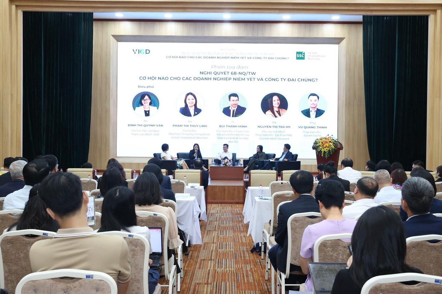 Hội thảo “Nghị quyết 68-NQ/TW về phát triển kinh tế tư nhân: Cơ hội nào cho các doanh nghiệp niêm yết và công ty đại chúng”. (Ảnh: TH).