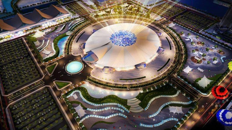 Bên cạnh đó là khu vực phụ trợ triển lãm như công viên cây xanh, hồ diều hòa, khu ẩm thực hơn 3.000m2, bãi đỗ xe hơn 18 ha, sức chứa hơn 10.000 chỗ…