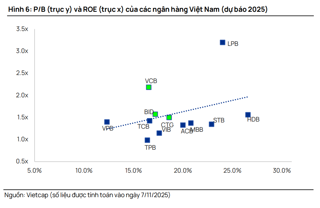 Tuy nhiên, Vietcap cũng chỉ ra một số rủi ro đáng theo dõi, gồm: kế hoạch tăng vốn có thể chậm triển khai hơn dự kiến; tăng trưởng tín dụng thấp hơn kỳ vọng; và NIM tiếp tục chịu áp lực nếu mặt bằng lãi suất huy động duy trì ở mức cao.