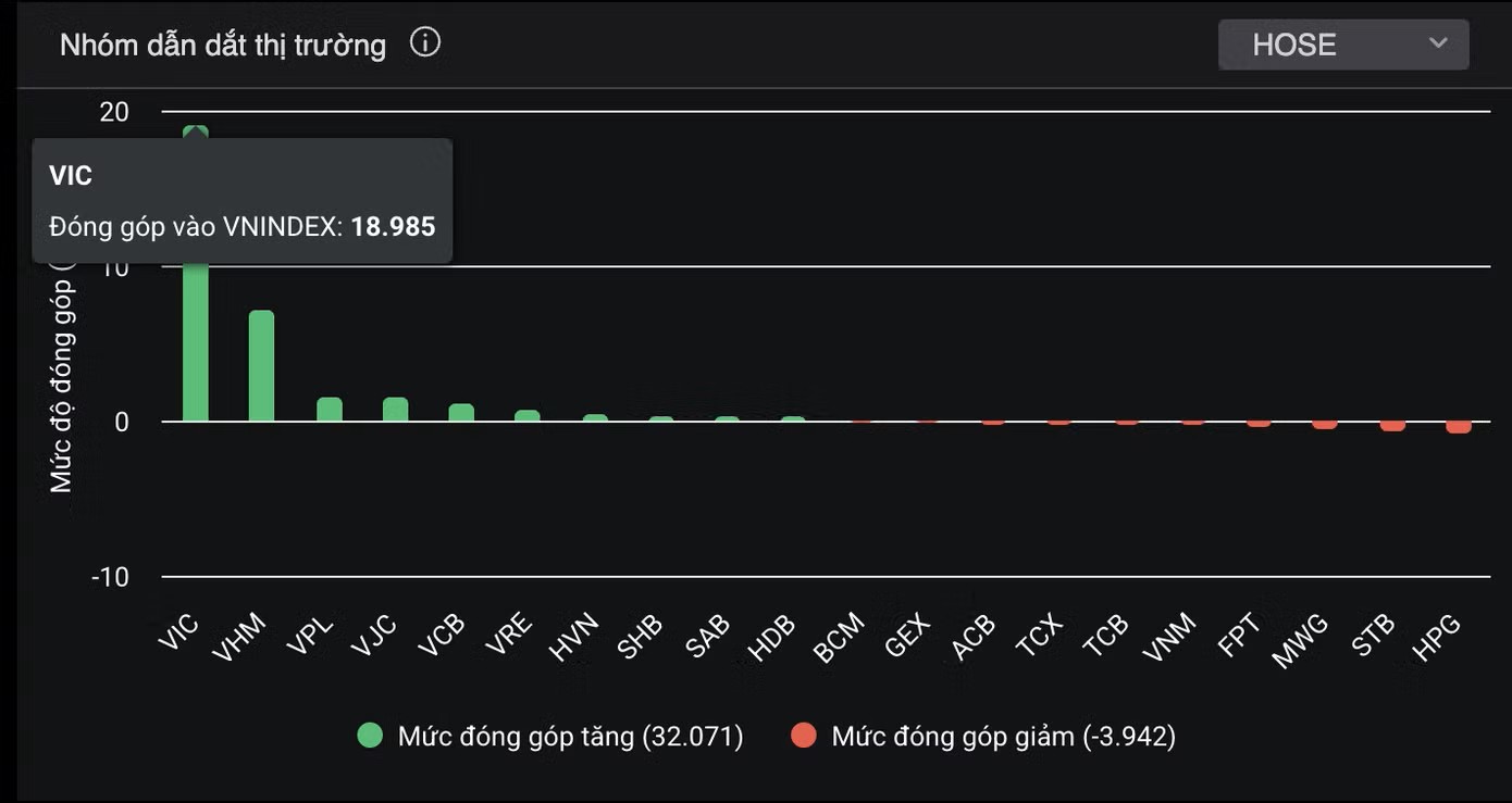 VIC chi phối đà tăng của VN-Index.