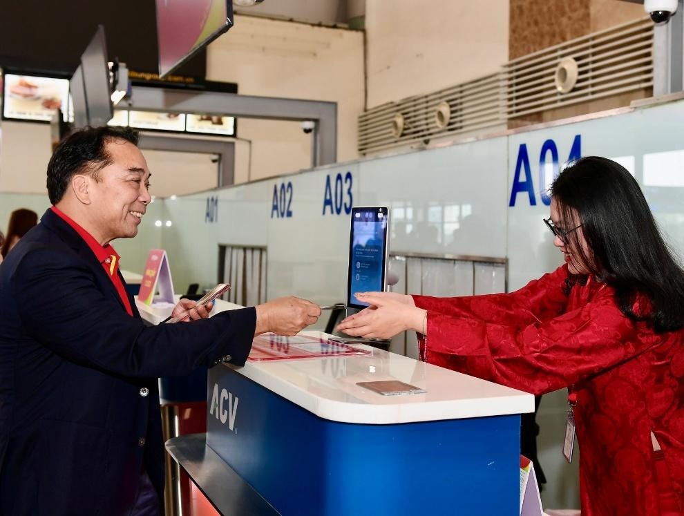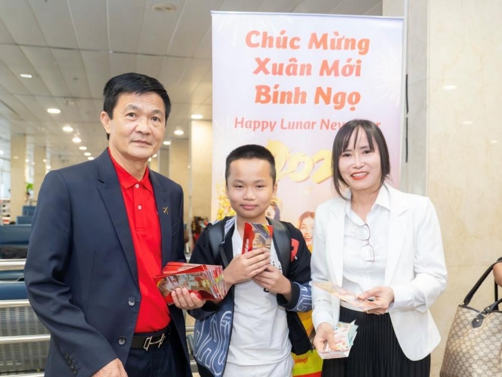 Cùng thời điểm, tại TP.HCM, sân bay Tân Sơn Nhất đón những vị khách đầu tiên “xông đất” năm Bính Ngọ trên các chuyến bay Vietjet, mở đầu cho một năm mới tốt lành.