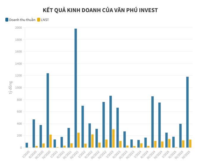 Cụ thể, năm 2025, Văn Phú ghi nhận doanh thu thuần đạt 1.976 tỷ đồng, chỉ tăng khoảng 4,1% so với mức 1.897 tỷ đồng của năm 2024. Dù mức tăng doanh thu không lớn, song lợi nhuận gộp lại tăng mạnh lên 749 tỷ đồng, cao hơn 135% so với cùng kỳ.